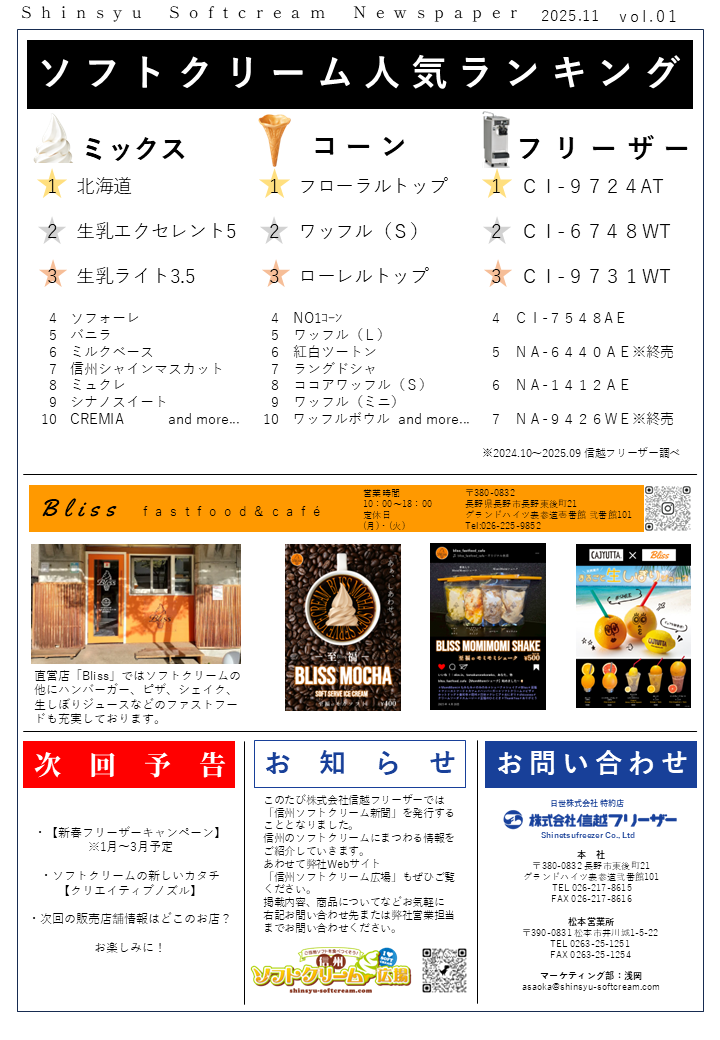 このたび株式会社信越フリーザーでは【信州ソフトクリーム新聞】を発行することとなりました。
