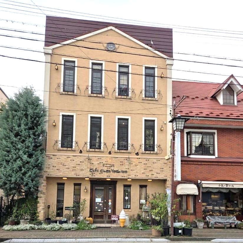 隣接する”カフェ シェ ヨシコ”にてフランセ板屋の美味しいスイーツをお召し上がりください。